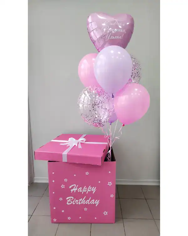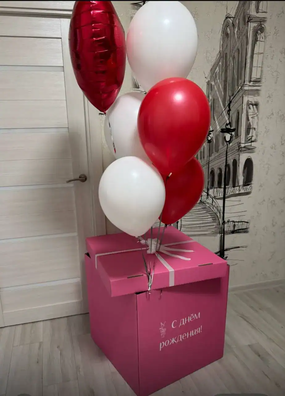 Для ярких эмоций отлично подходит коробка-сюрприз. При открытии шары эффектно вылетают вверх, создавая момент неожиданности. Этот вариант удобно купить или заказать для дня рождения, годовщины или романтического сюрприза.