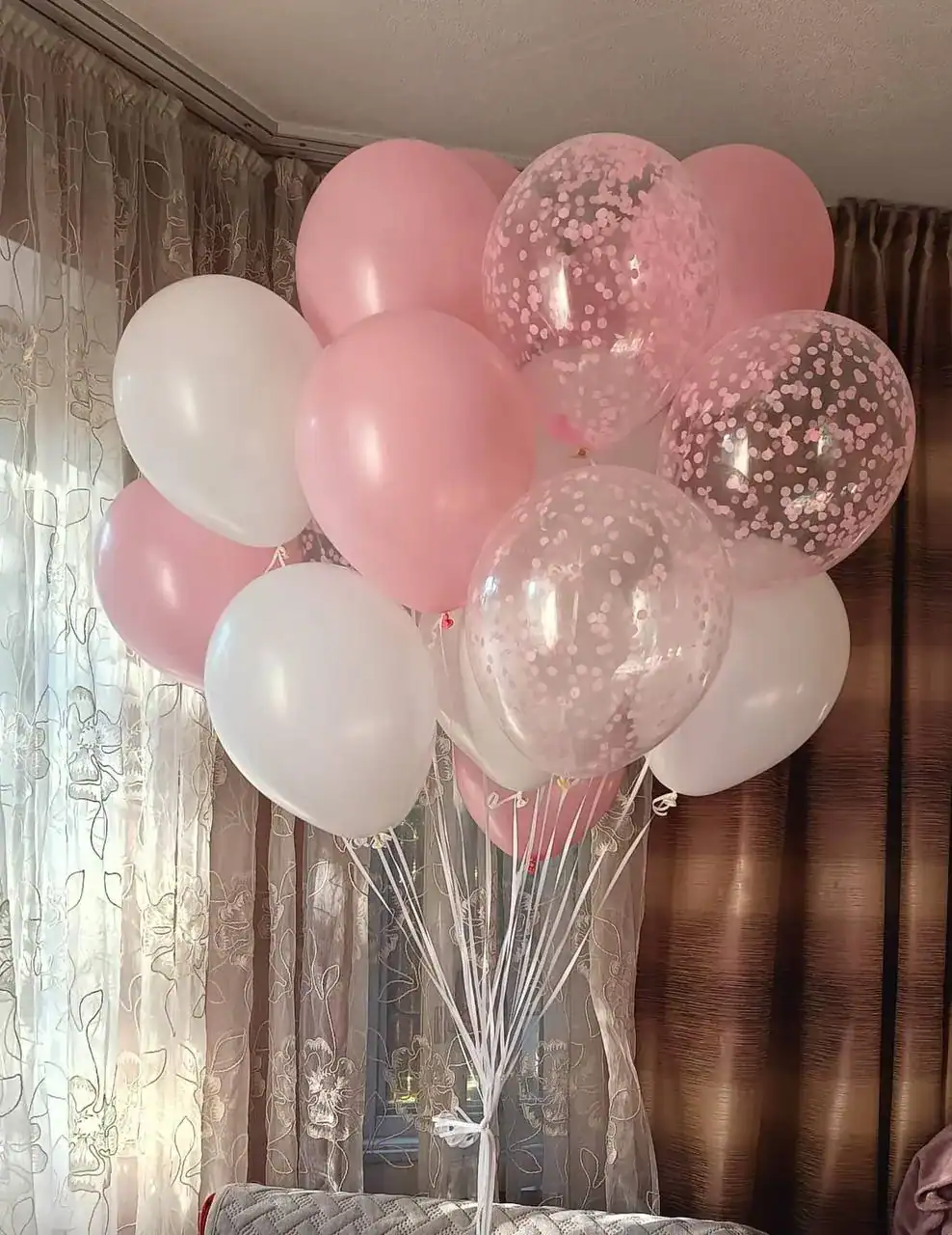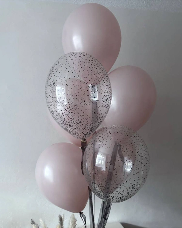 Крупные гелиевые шары используют для оформления фотозон и интерьеров — они долго держатся в воздухе и сразу привлекают внимание. Шары с перьями выглядят более нежно и стильно, поэтому их часто заказывают для фотосессий и эстетичных праздников.