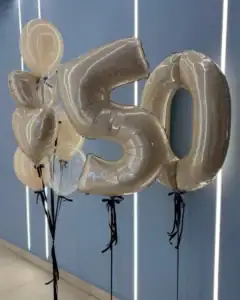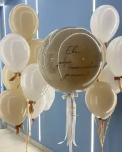 Индивидуальные надписи делают оформление более личным. Можно заказать воздушный шар с именем, датой или коротким поздравлением. Такие шары часто выбирают в качестве подарка или центрального элемента композиции, чтобы подчеркнуть значимость события.
