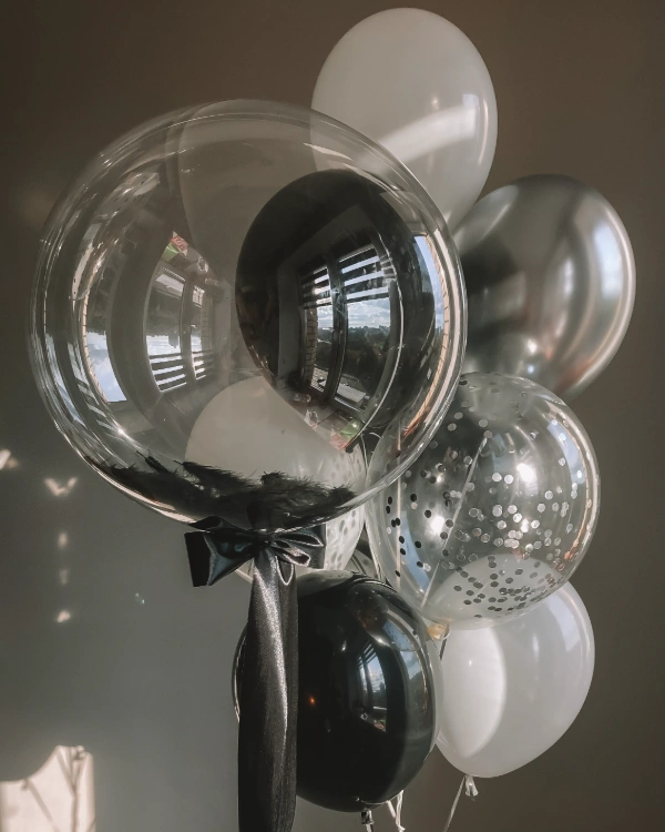 Bubble-шары легко адаптировать под любой праздник. Внутрь можно добавить перья для нежного и элегантного эффекта или конфетти и блестки для яркого, динамичного настроения. Большой популярностью пользуются шары с надписями и рисунками — имя, дата или поздравление превращают шар в персональный подарок. Не менее эффектно смотрятся варианты «шар в шаре», композиции с фигуркой, игрушкой или цветком внутри, а также светящиеся Bubble-шары со встроенными светодиодами для вечерних мероприятий.