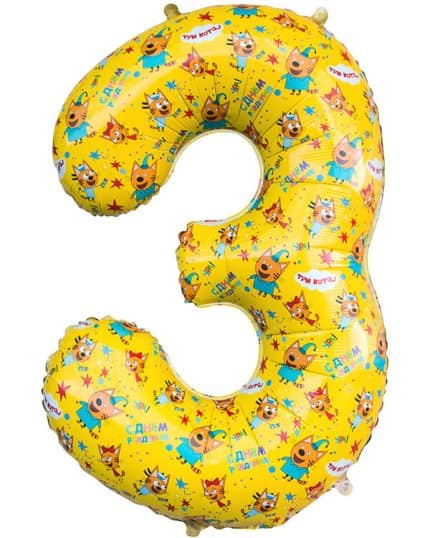 Главная страница » Каталог » Шарики из фольги » Цифры » Шар Цифра Три Кота 86 см